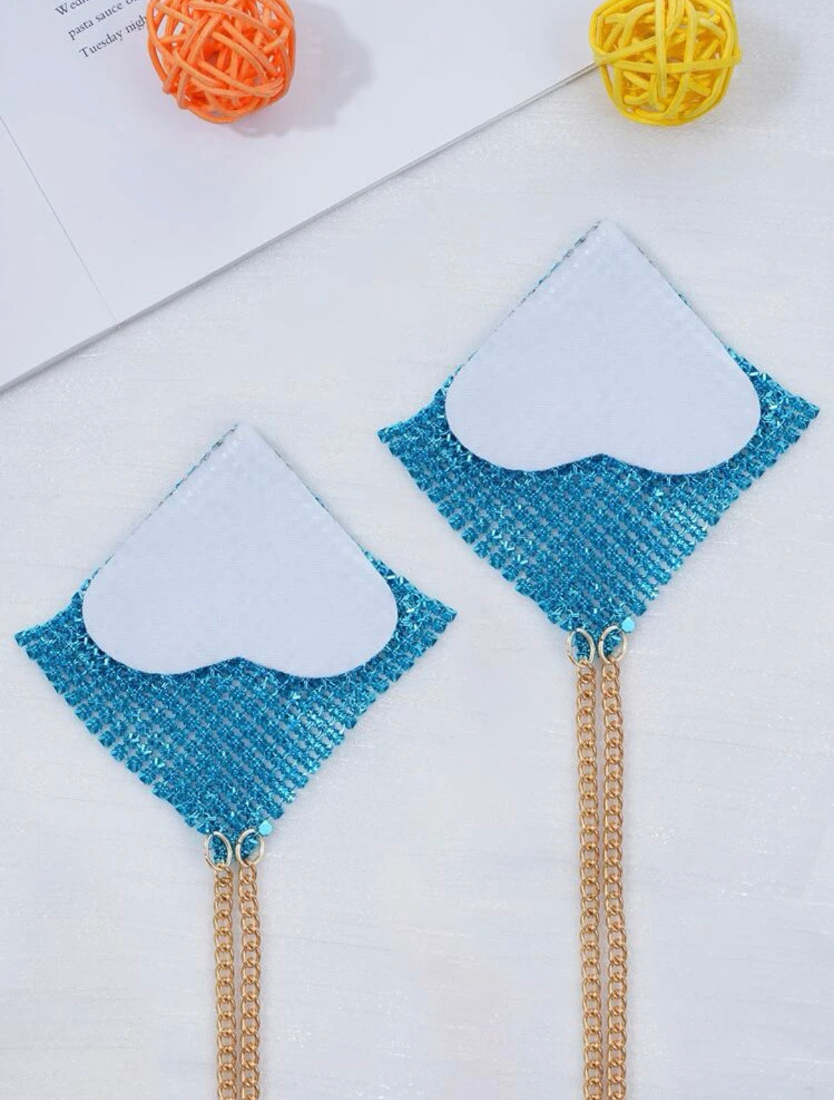 We make custom nipple pasties, body chains, leg garters and custom colored gloves of your choice. These items are handmade with love and can take up to a week to produce.